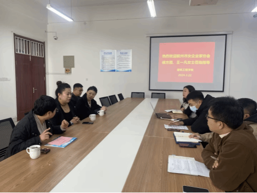 为进一步促进校企合作,推动学院毕业生就业发展,3月22日上午,胶州市女企业协会副会长、青岛三步纸业有限公司总经理侯方圆女士,胶州市女企业家协会理事、青岛海晶体育有限公司总经理王一凡女士到建筑工程学院交流座谈。