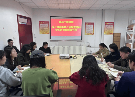 为积极响应中共中央办公厅《关于在全党开展深入贯彻中央八项规定精神学习教育的通知》要求,落实校党委关于深入贯彻中央八项规定精神学习教育的部署安排,2025年4月1日,食品工程学院在图书馆317室举办深入贯彻中央八项规定精神学习教育读书班。此次读书班由学院党总支副书记李元旻主持,全体师生党员踊跃参与,共同深入贯彻中央八项规定精神学习教育,强化党性修养,提升政治素养。